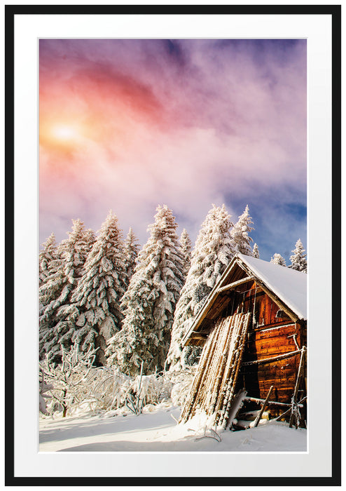Produktcode: Holzhütte im Schnee, im Galerie-Passepartout Bilderrahmen