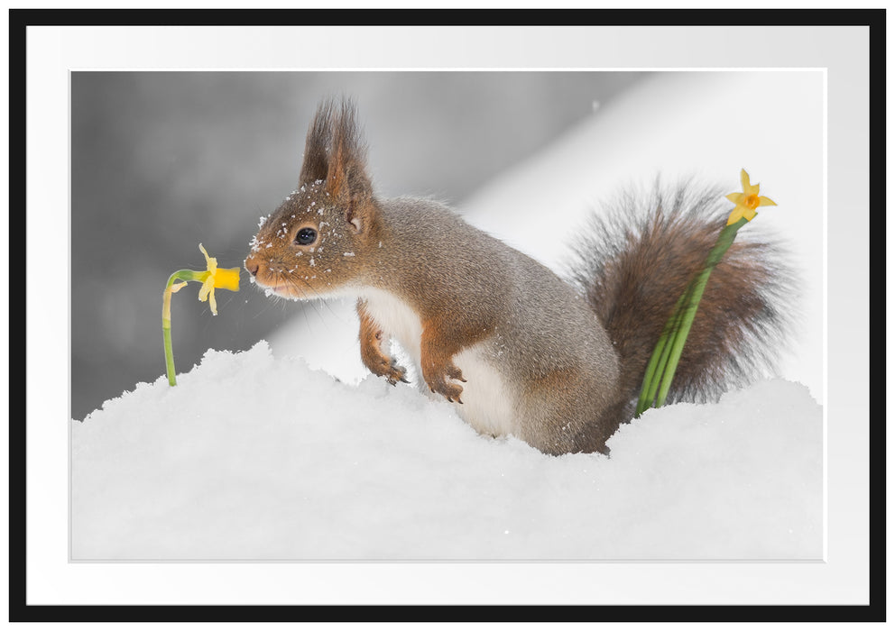 Produktnummer: Pixxprint Holzhütte im Schnee, im Galerie-Passepartout Bilderrahmen