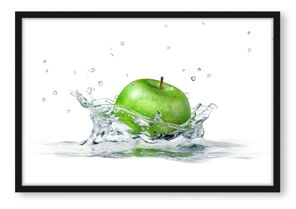 Produktcode: Grüner Apfel fällt in Wasser, Poster mit Bilderrahmen