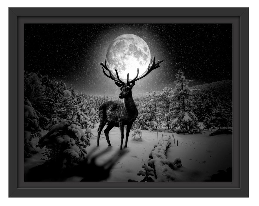 Produktcode: Rentier im Winterwald bei Mondschein, Monochrome, im Schwebe-Effekt Bilderrahmen