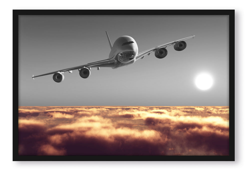 Pixxprint Flugzeug über Wolkenmeer, Poster mit Bilderrahmen
