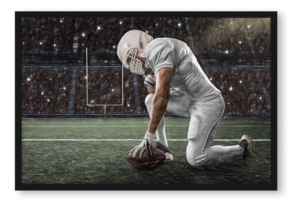 Haushalt / Pixxprint / Pixxprint knieender Football-Spieler, Poster mit Bilderrahmen verkäufe