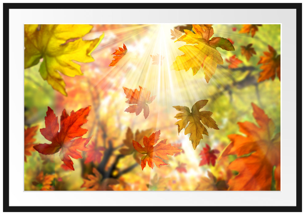 Produktcode: Fliegende bunte Herbstblätter, im Galerie-Passepartout Bilderrahmen