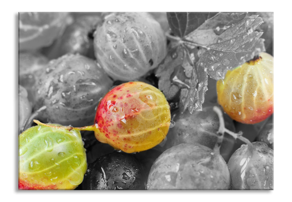 Produktcode: Stachelbeeren mit Wassertropfen, Glasbild