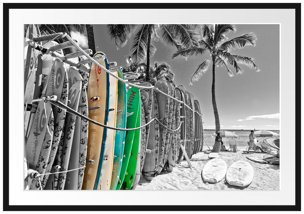 Produktnummer: Pixxprint bunter Surfboards am Strand, im Galerie-Passepartout Bilderrahmen