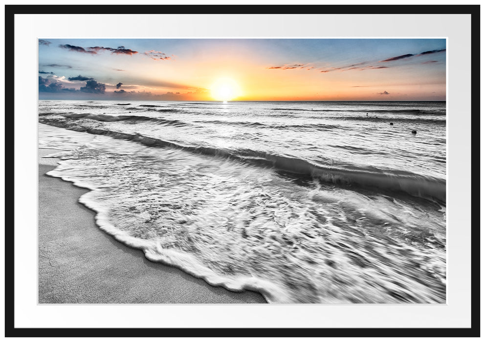 Pixxprint bunter Surfboards am Strand, im Galerie-Passepartout Bilderrahmen