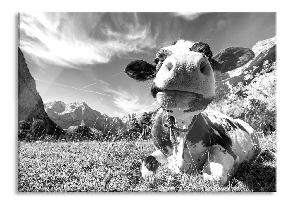 Pixxprint Kuh im Karwendelgebirge Kunst B&W, Glasbild