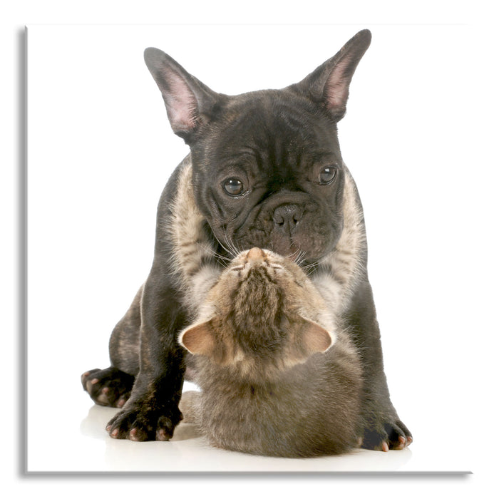 Pixxprint Katze und Mobs Freunde fürs Leben, Glasbild Quadratisch