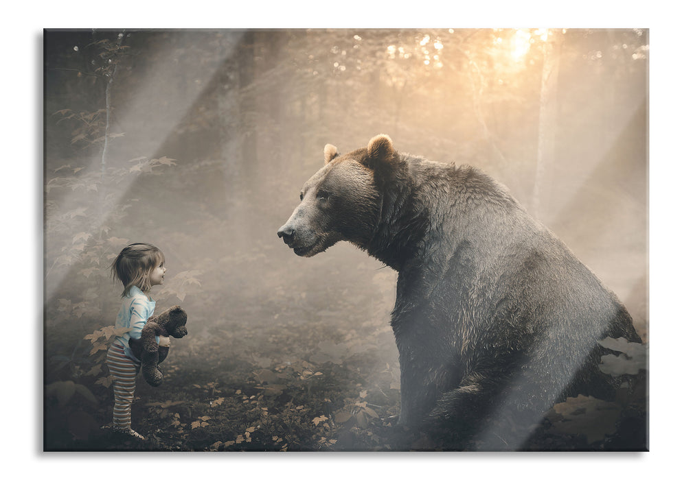 Produktcode: Mädchen mit Teddy und Bär im Wald, Glasbild