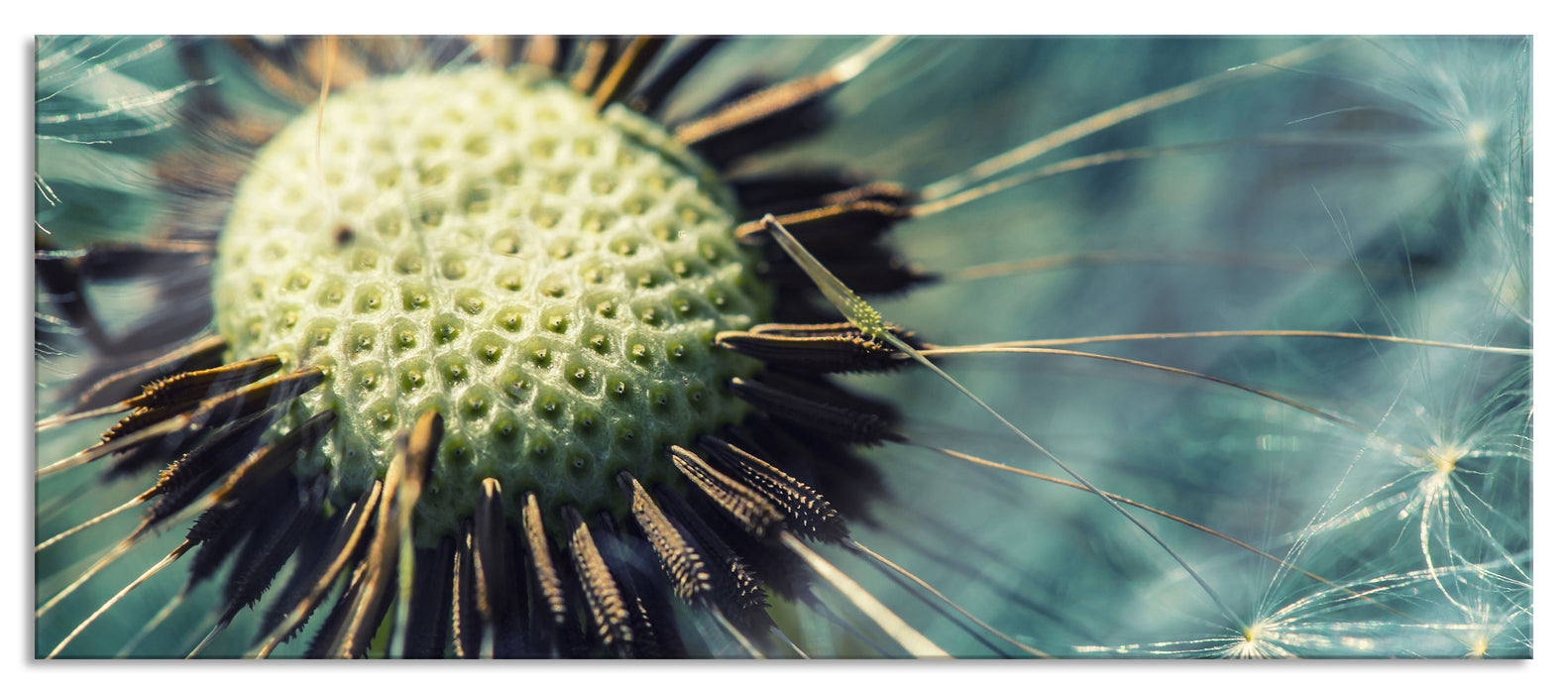 Produktcode: Nahaufnahme einer Pusteblume, Glasbild Panorama