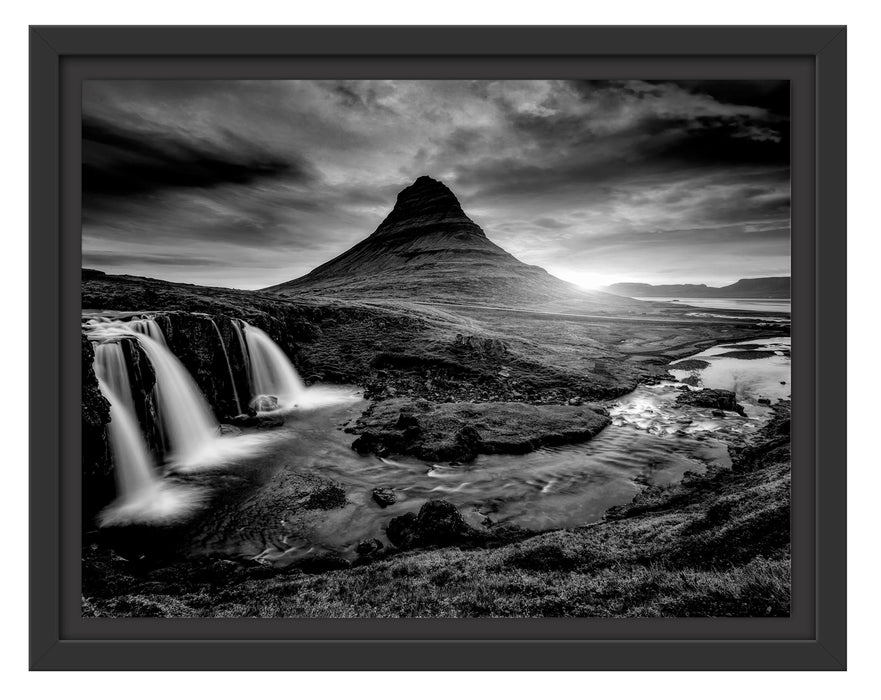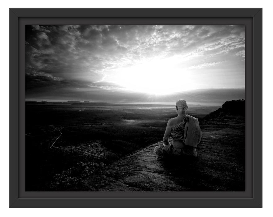 Produktcode: Vernebelte Berge bei Sonnenaufgang, Monochrome, im Schwebe-Effekt Bilderrahmen