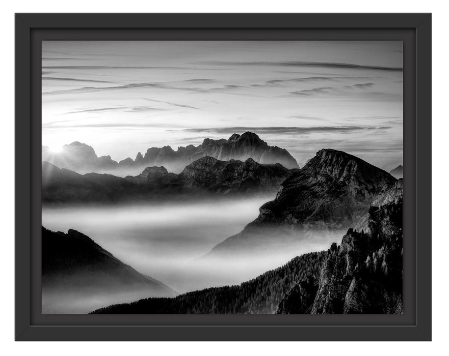Produktnummer: Pixxprint Vernebelte Berge bei Sonnenaufgang, Monochrome, im Schwebe-Effekt Bilderrahmen