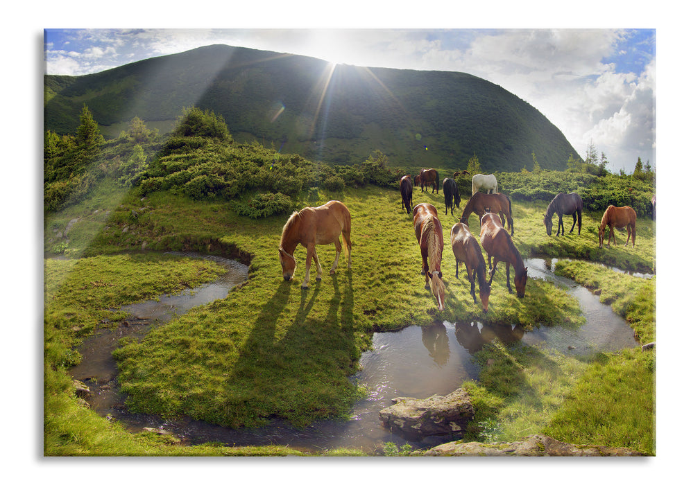 Produktnummer: Pixxprint Pferde auf Wiese, Glasbild