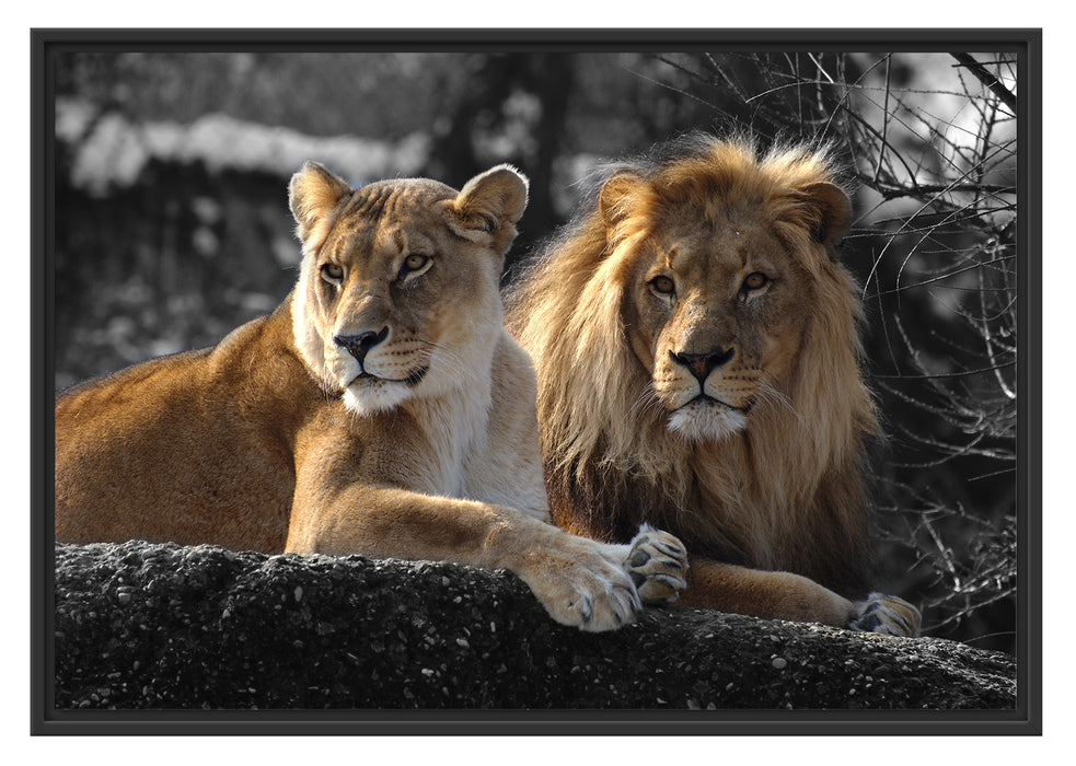 Haushalt / Pixxprint / Pixxprint interessiertes Löwenpaar, im Schwebe-Effekt Bilderrahmen verkäufe