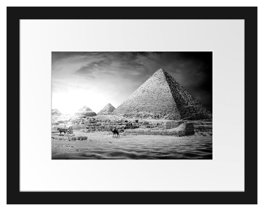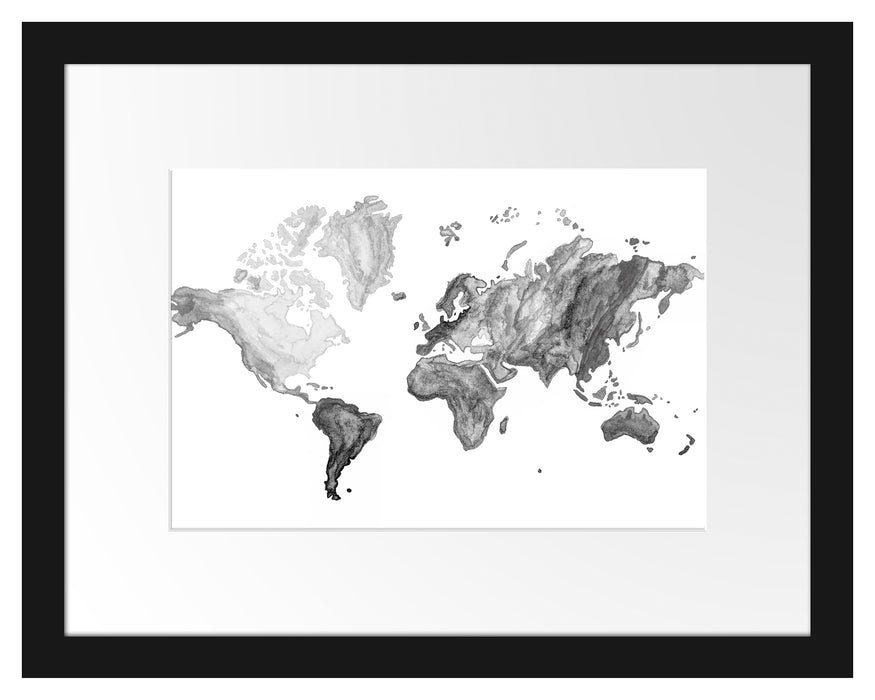 Pixxprint Lustige Katze mit Lächeln auf Papier, Monochrome, im Galerie-Passepartout Bilderrahmen