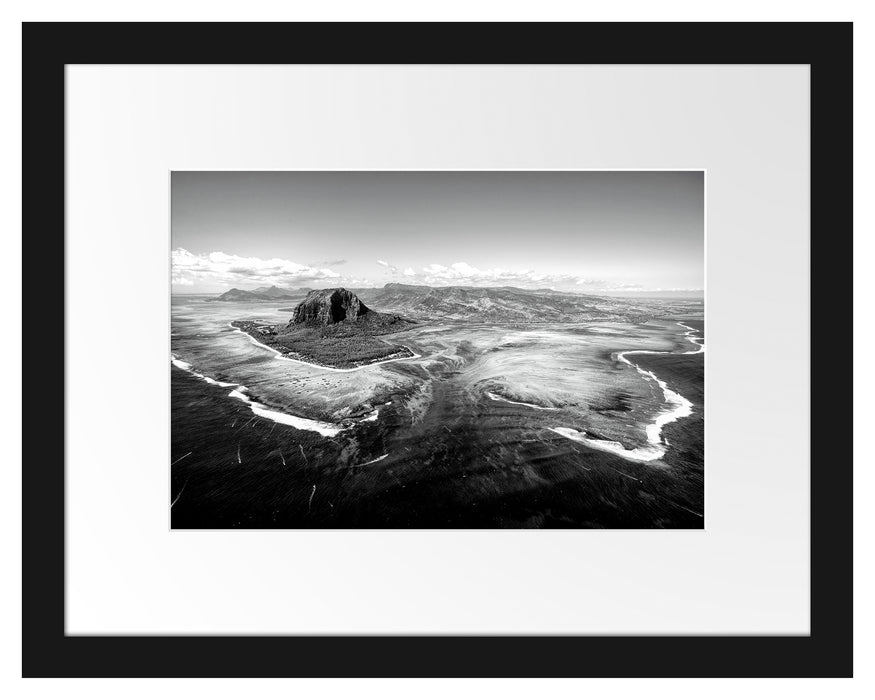 Pixxprint Blick von oben auf die Trauminsel Mauritius, Monochrome, im Galerie-Passepartout Bilderrahmen