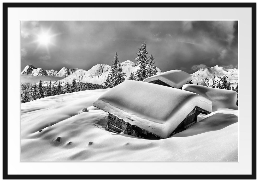 Produktcode: Berghütten Alpen, im Galerie-Passepartout Bilderrahmen