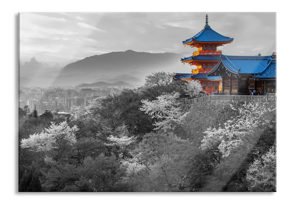 Haushalt / Pixxprint / Pixxprint Japanischer Tempel vor nebeliger Stadt B&W Detail, Glasbild verkäufe