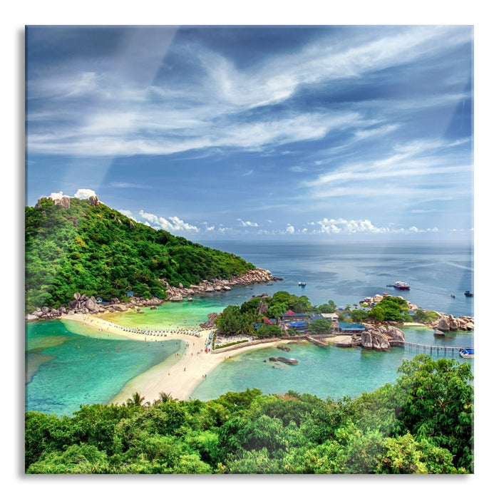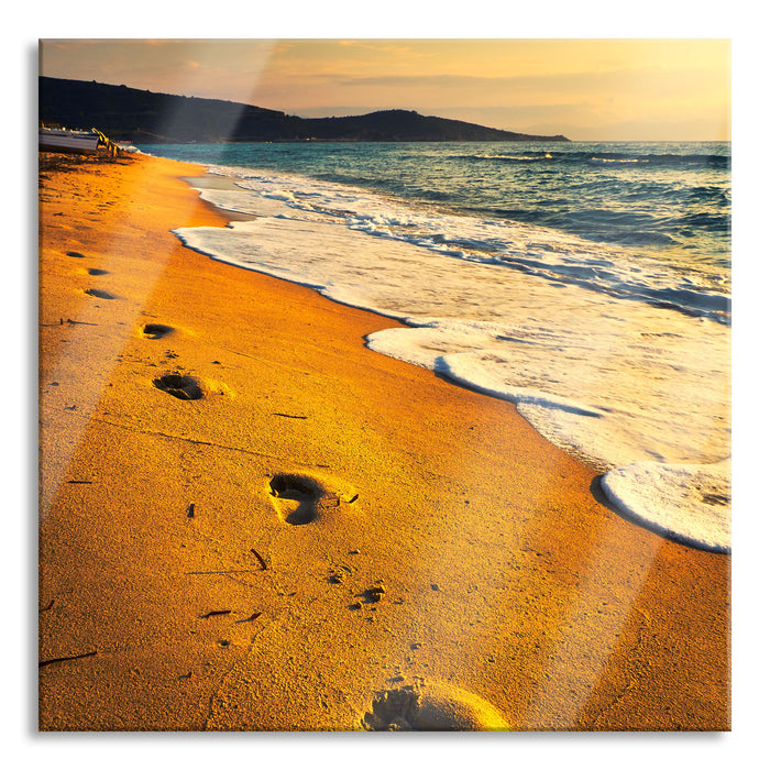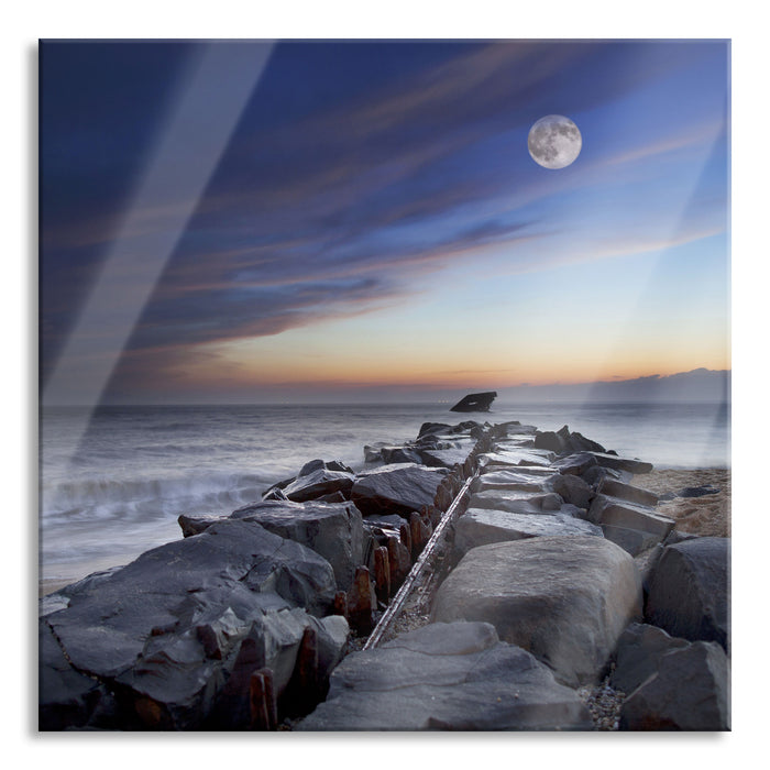 Produktcode: Steinlinie im Meer, Glasbild Quadratisch