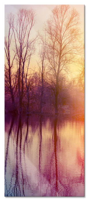 Produktcode: Bäume spiegeln sich im Wasser, Glasbild Panorama