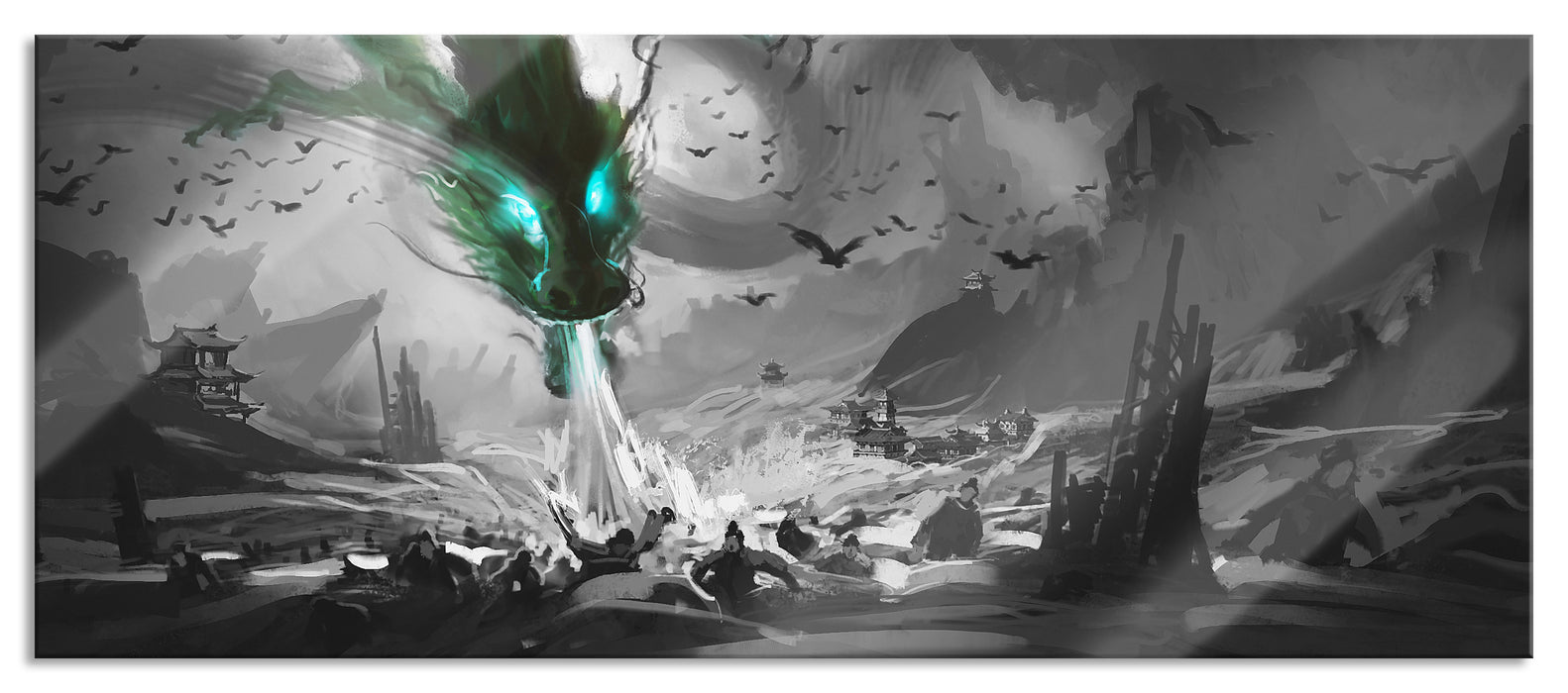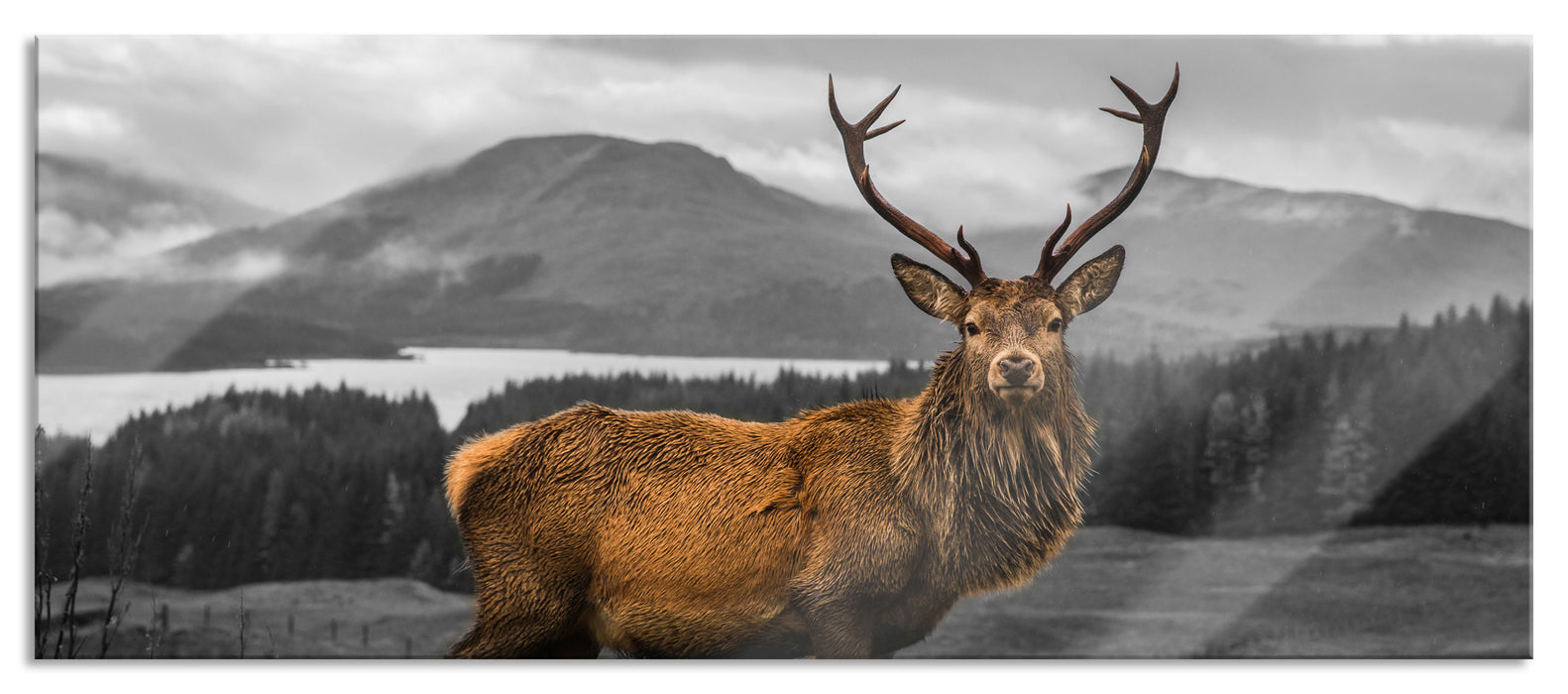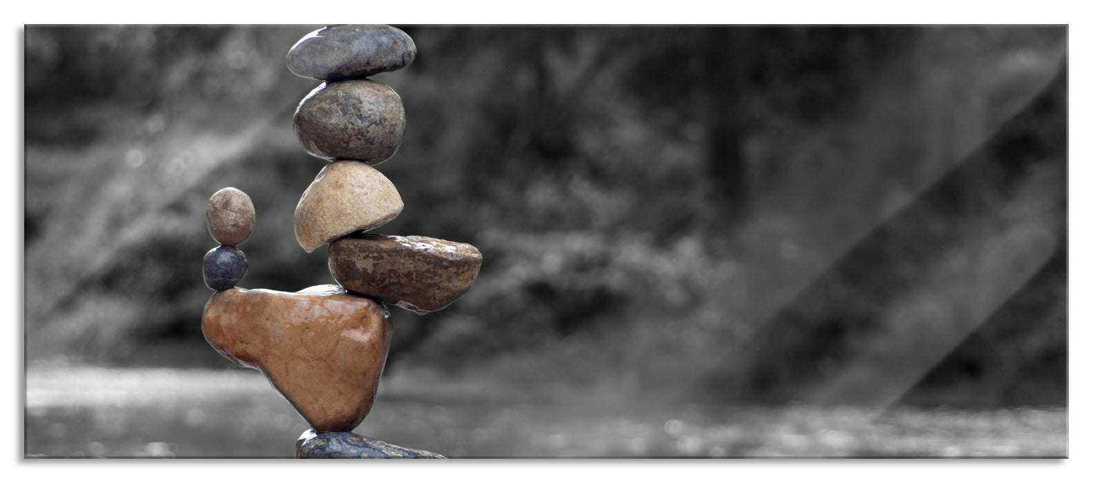 Produktnummer: Pixxprint Fluss schlängelt sich durch Bergtal B&W Detail, Glasbild Panorama