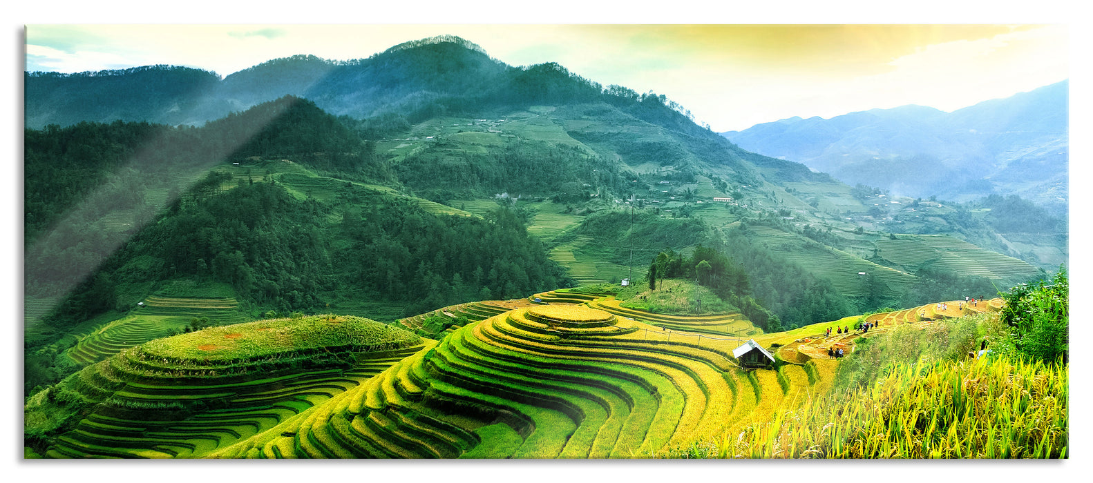 Produktcode: Reisfeld Plantage in Asien, Glasbild Panorama