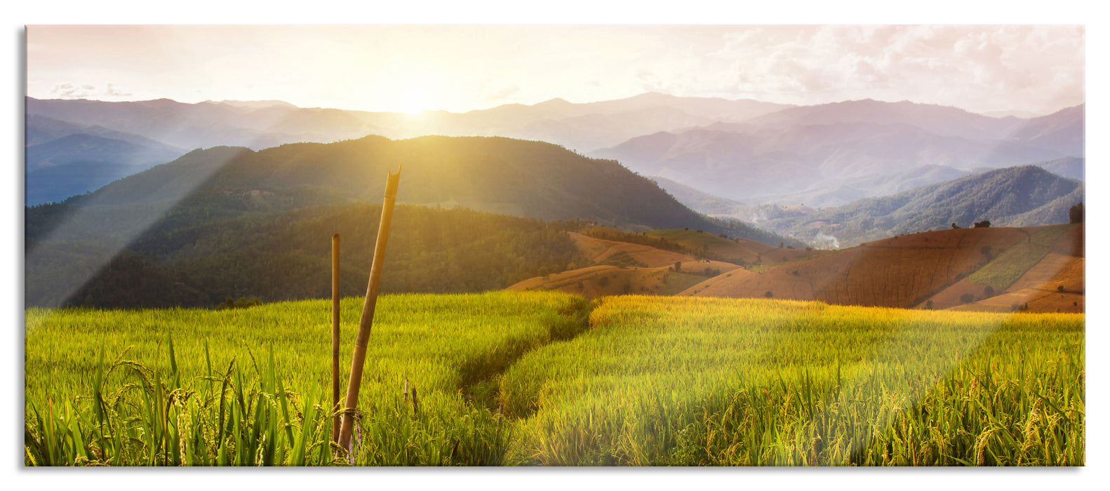 Haushalt / Pixxprint / Pixxprint Reisfeld Plantage in Asien, Glasbild Panorama verkäufe