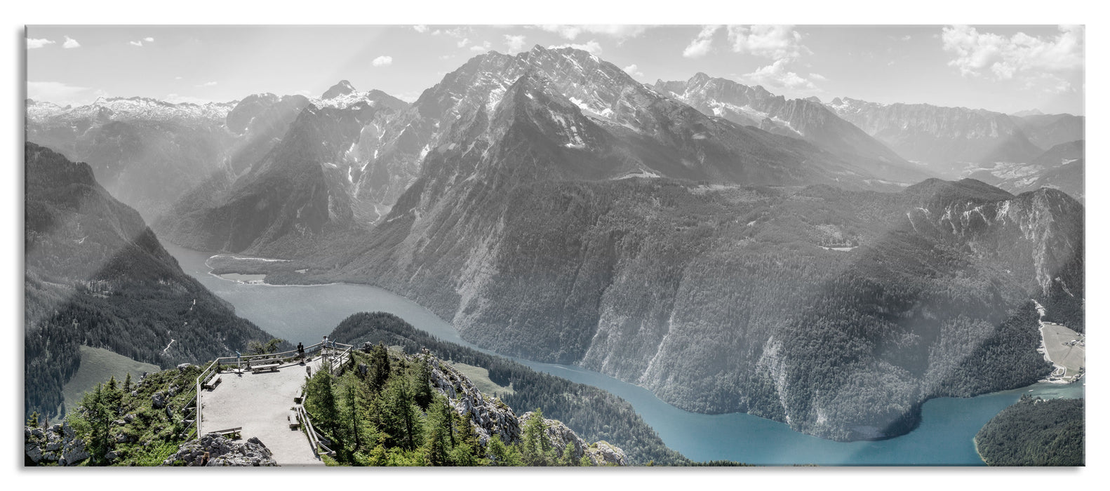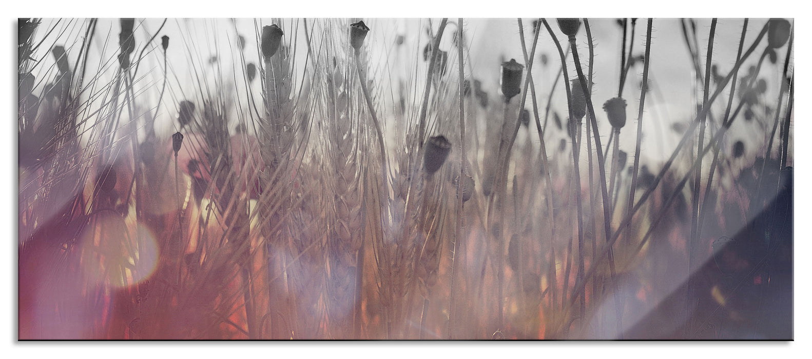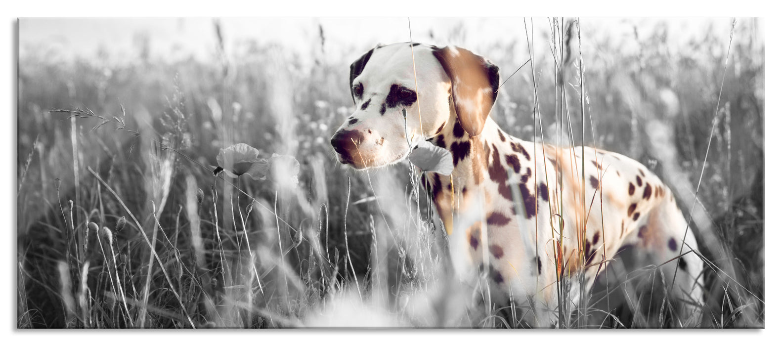 Pixxprint Neugieriger Hund im Feld, Glasbild Panorama