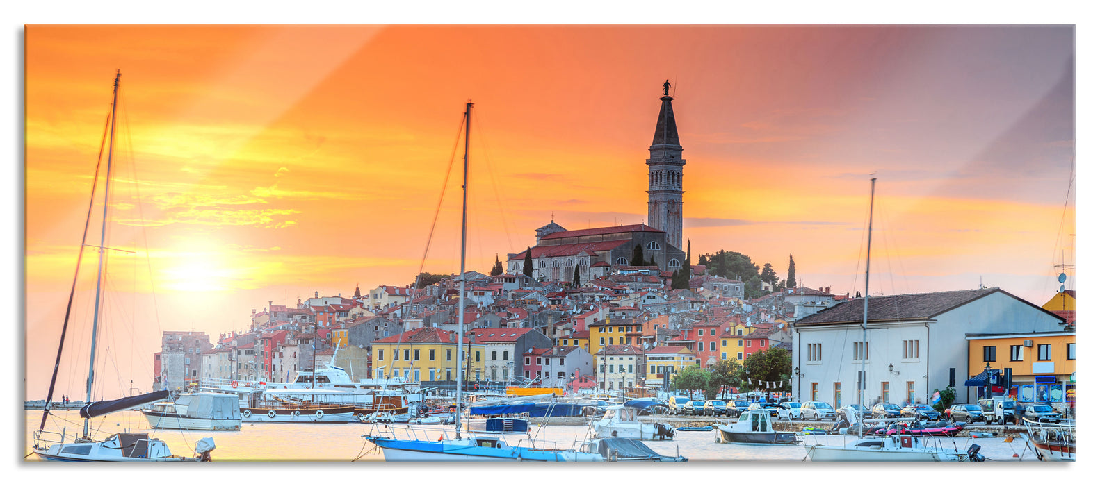 Produktcode: Kroatische Hafenstadt, Glasbild Panorama